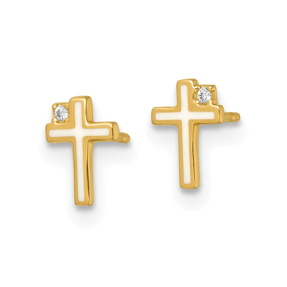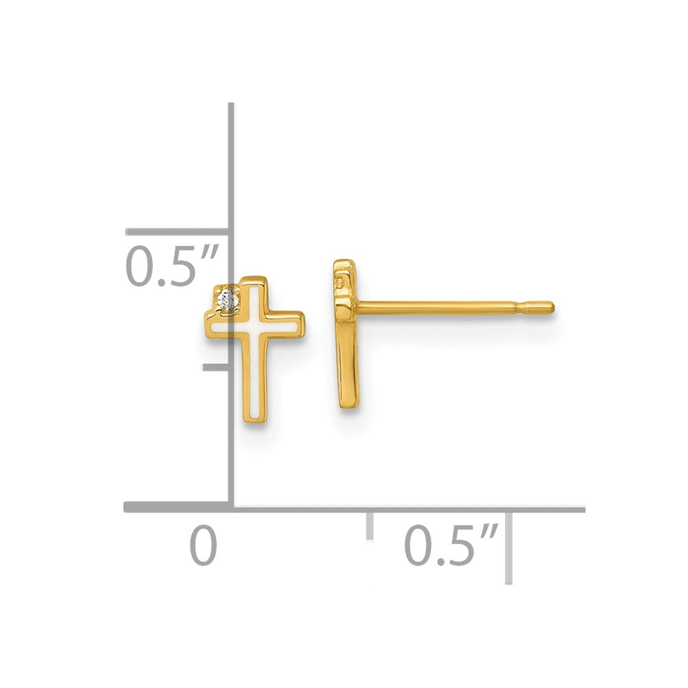 14k Madi K Polished White Enameled CZ Cross Childrens Post Earrings