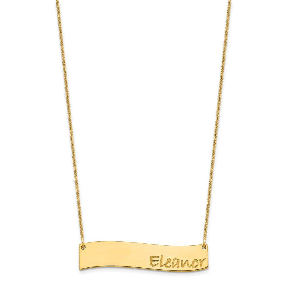 14k Medium Yellow Gold Medium BRADLEY HAND Curved Bar Necklace