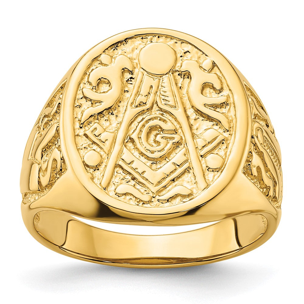 14k Men's Polished and Grooved (Not Enameled) Masonic Ring