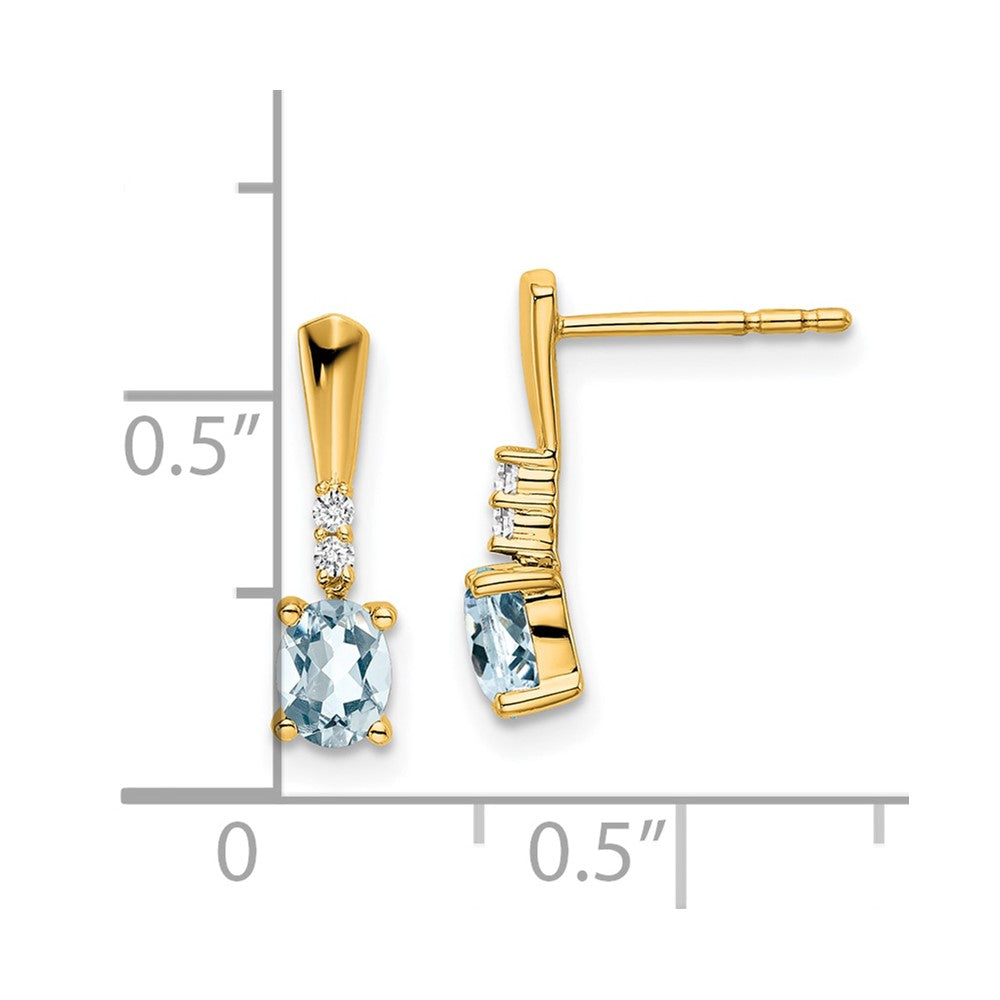 14K Oval Aquamarine and Diamond Dangle Earrings