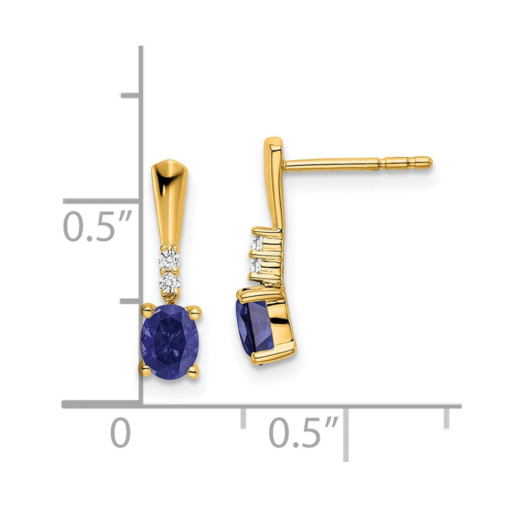 14K Oval Created Sapphire and Diamond Dangle Earrings