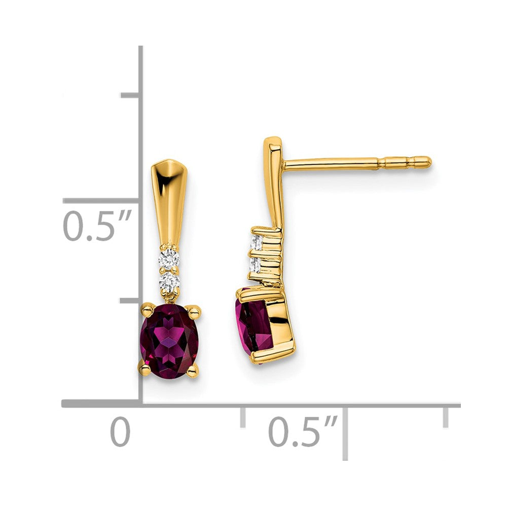 14K Oval Rhodolite Garnet and Diamond Dangle Earrings