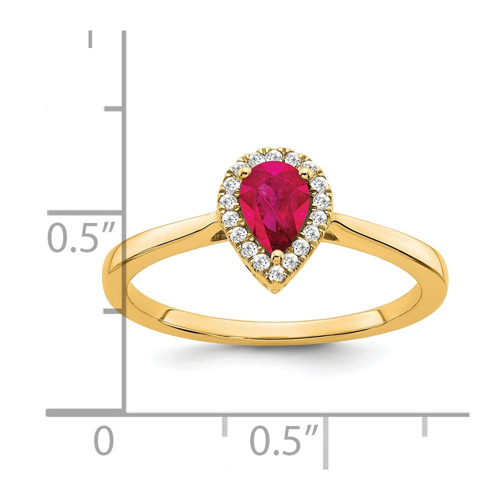 14k Pear Ruby and Diamond Halo Ring