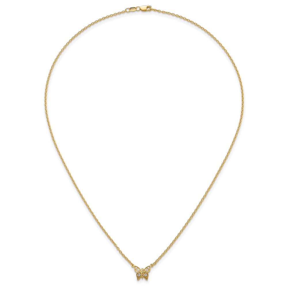 14K Polished 1/10 carat Diamond Butterfly Necklace