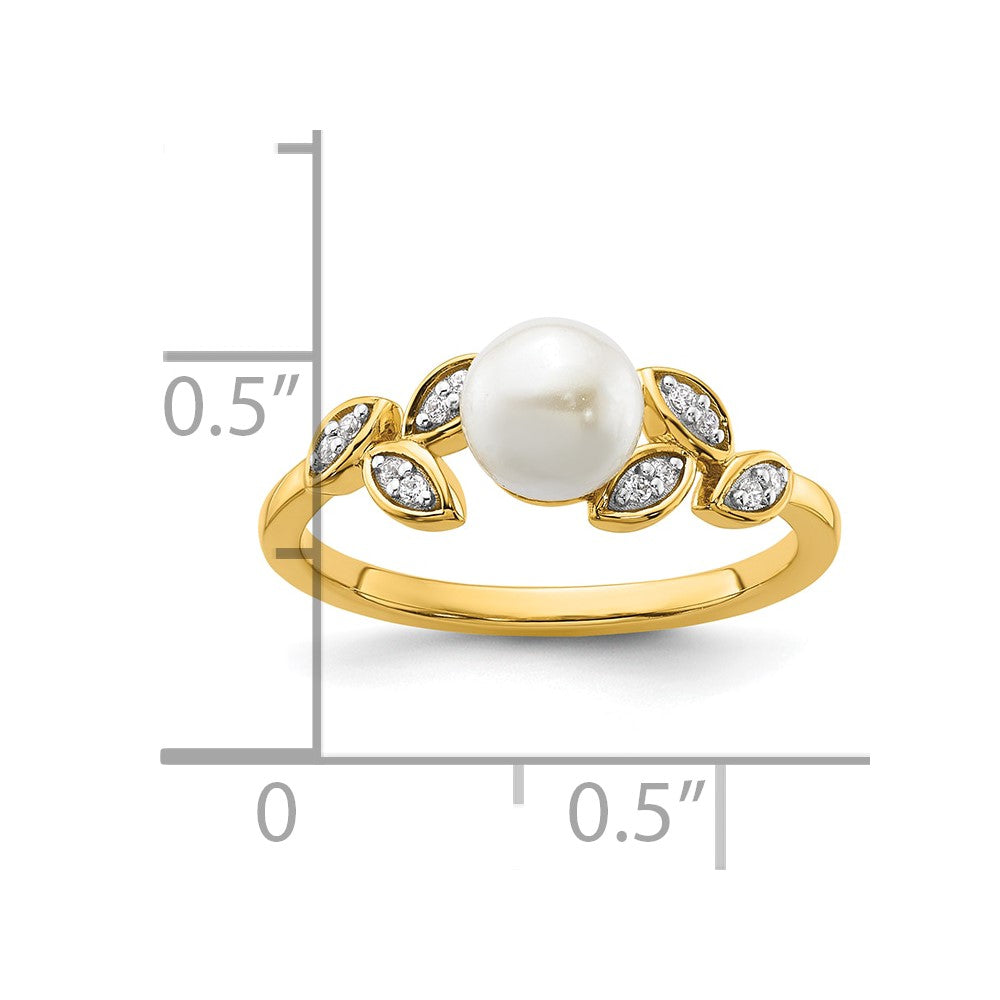 14K Polished 1/20 carat Diamond and White Freshwater Cultured Pearl Leaf Design Size 7 Ring