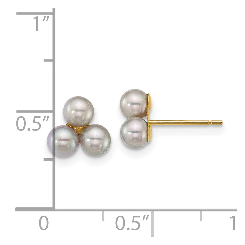 14k Polished 3- Button Grey Freshwater Cultured 3-Pearl Post Earrings
