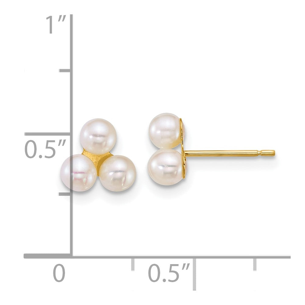 14k Polished 3- Button White Freshwater Cultured 3-Pearl Post Earrings