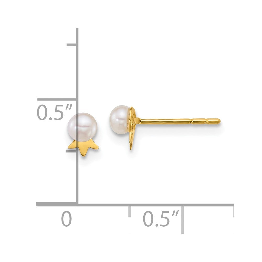 14k Polished 3- Round White Freshwater Cultured Pearl with Crown Post Earrings