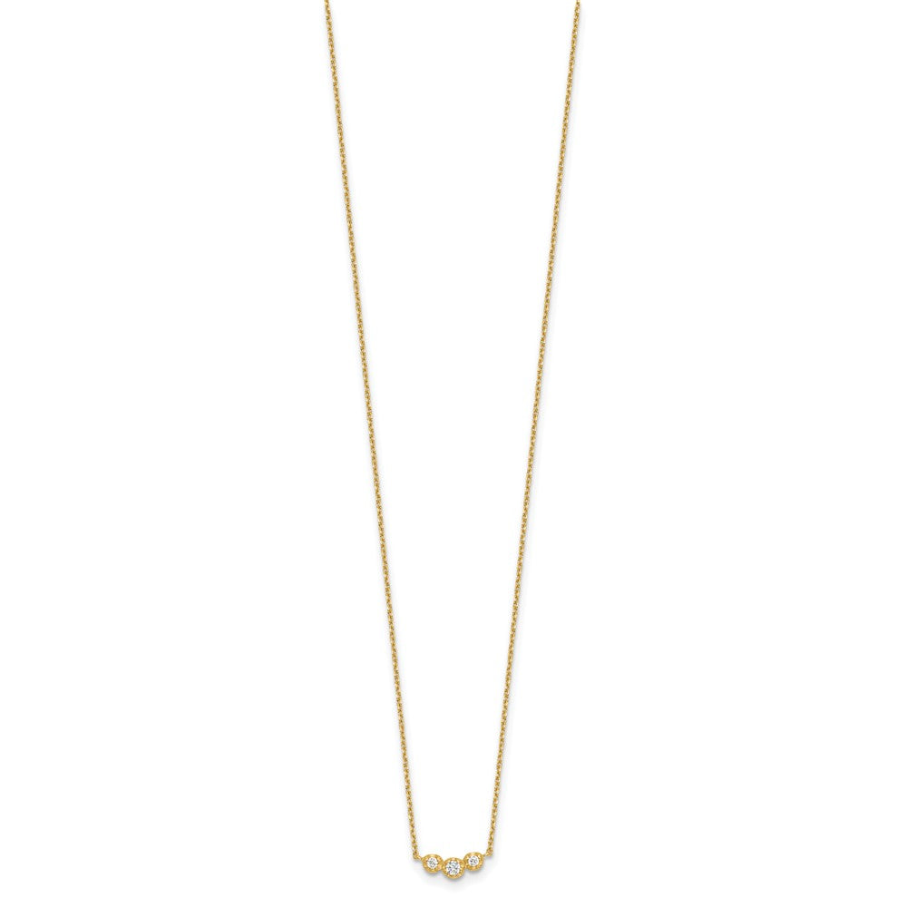 14k Polished 3-Stone CZ Necklace Plus Extender