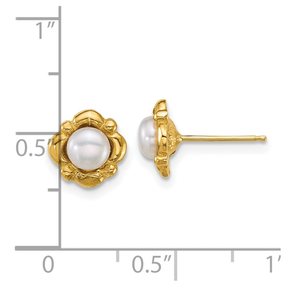 14k Polished 4- Button White Freshwater Cultured Pearl Post Earrings