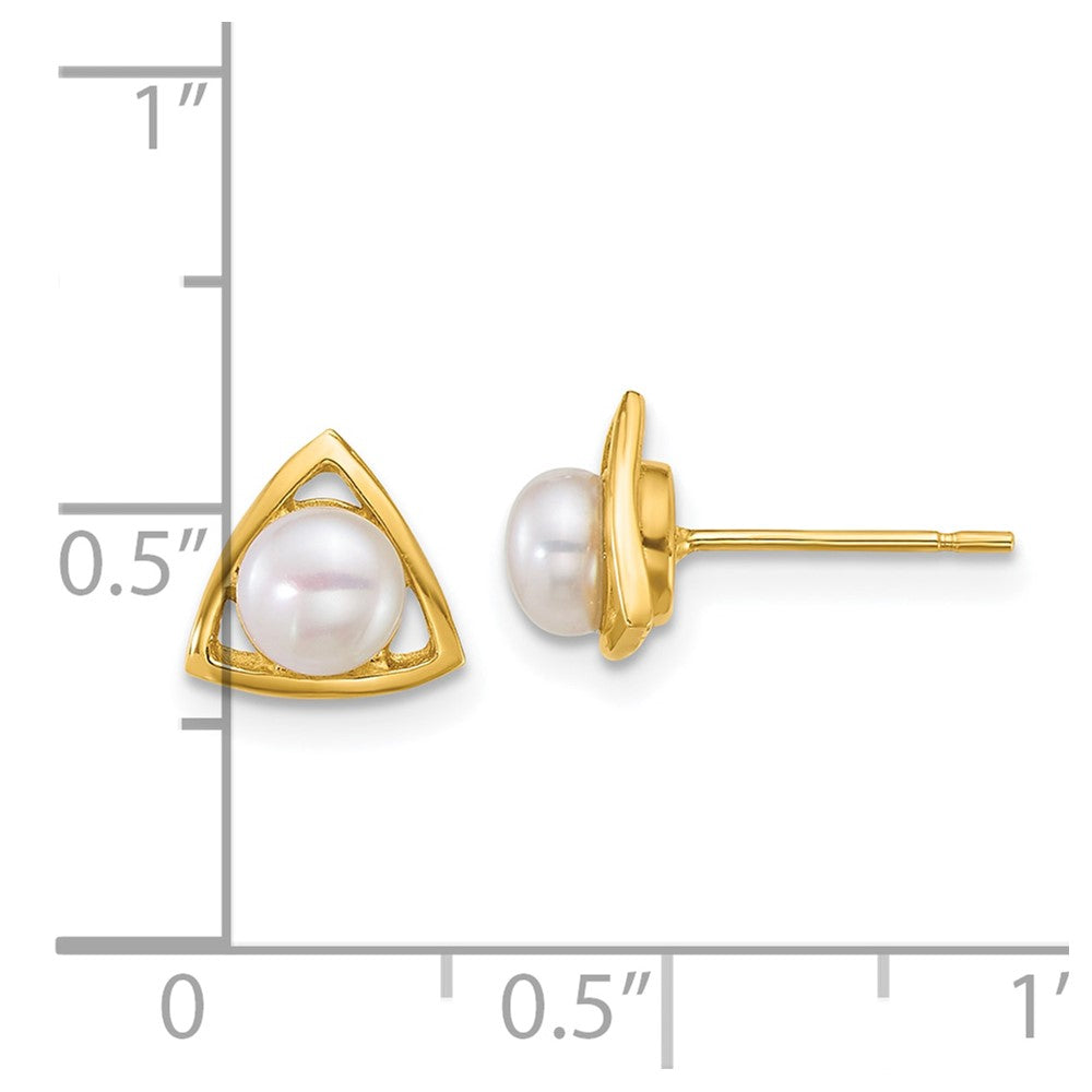 14k Polished 4- Button White Freshwater Cultured Pearl Triangle Post Earrings