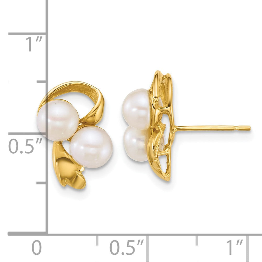 14k Polished 5- Button White Freshwater Cultured 2-Pearl Post Earrings