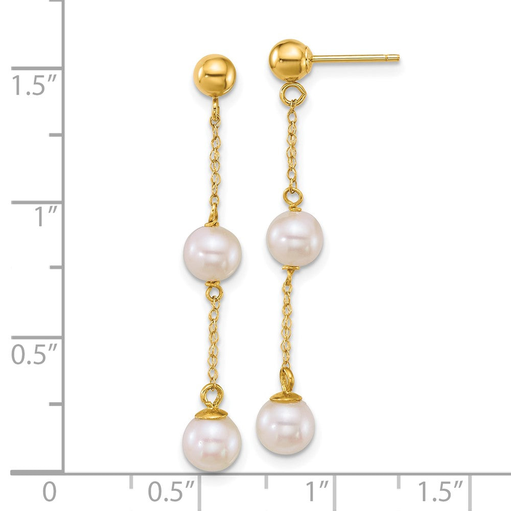 14k Polished 5- Round White Freshwater Cultured 2-Pearl and Chain Dangle Post Earrings