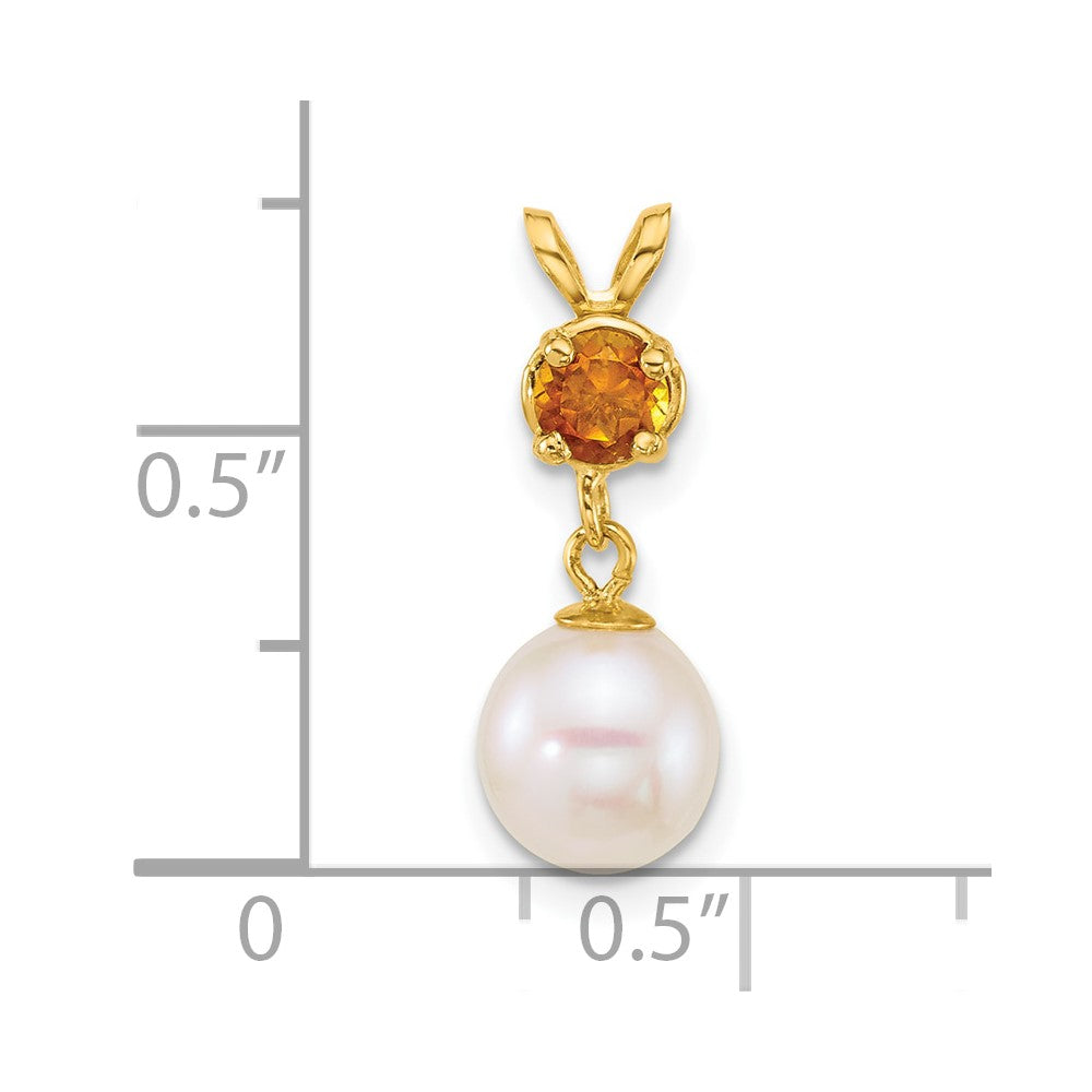 14k Polished 7- Round White Freshwater Cultured Pearl Dangle and Citrine Pendant