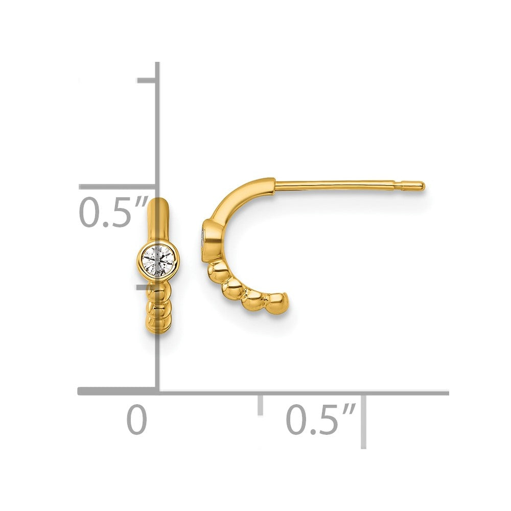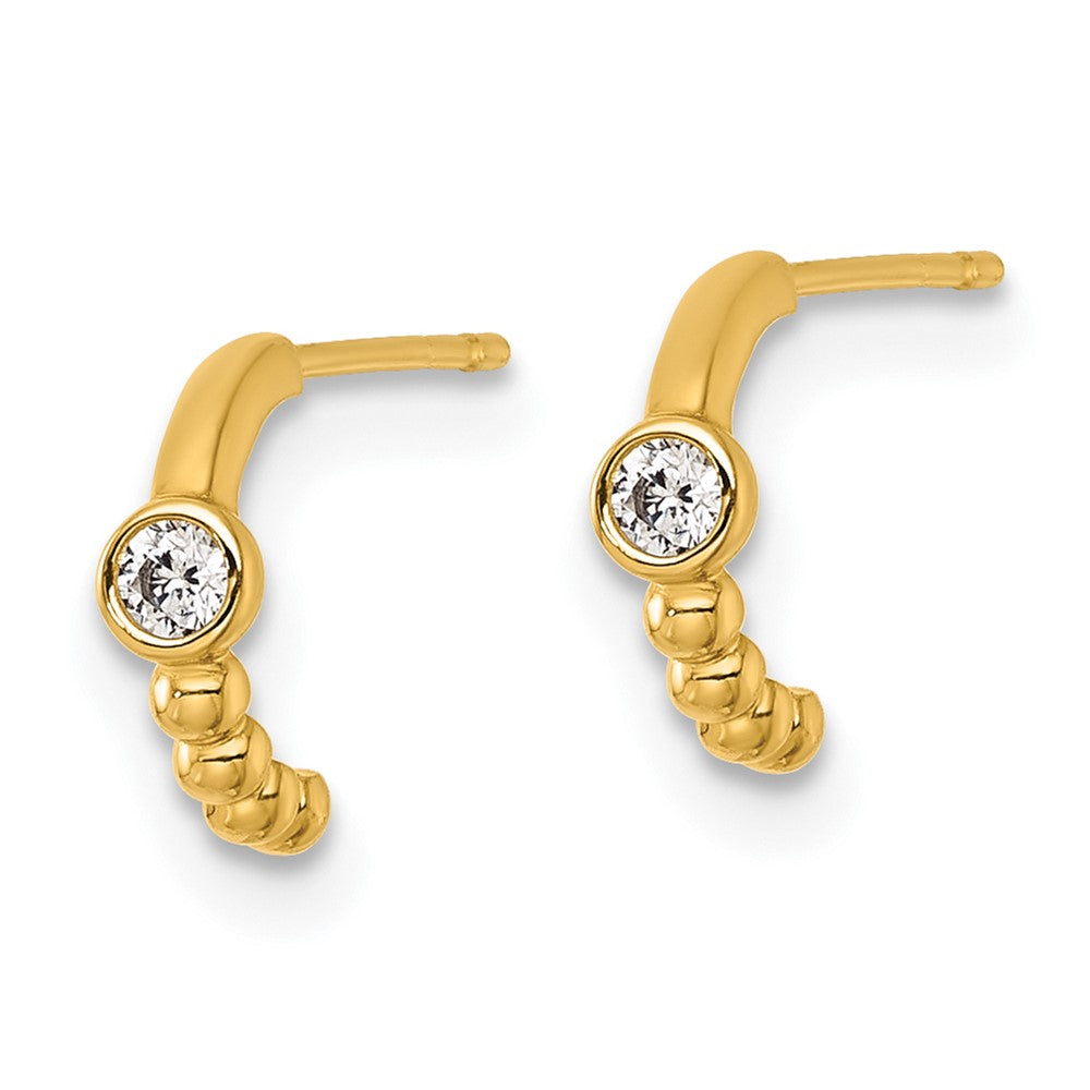 14k Polished and Beaded CZ C-Hoop Post Earrings