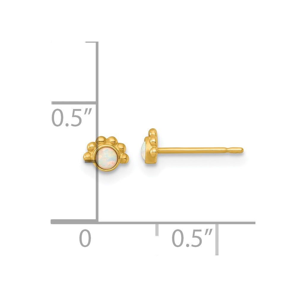 14k Polished and Beaded Lab Created Opal Post Earrings