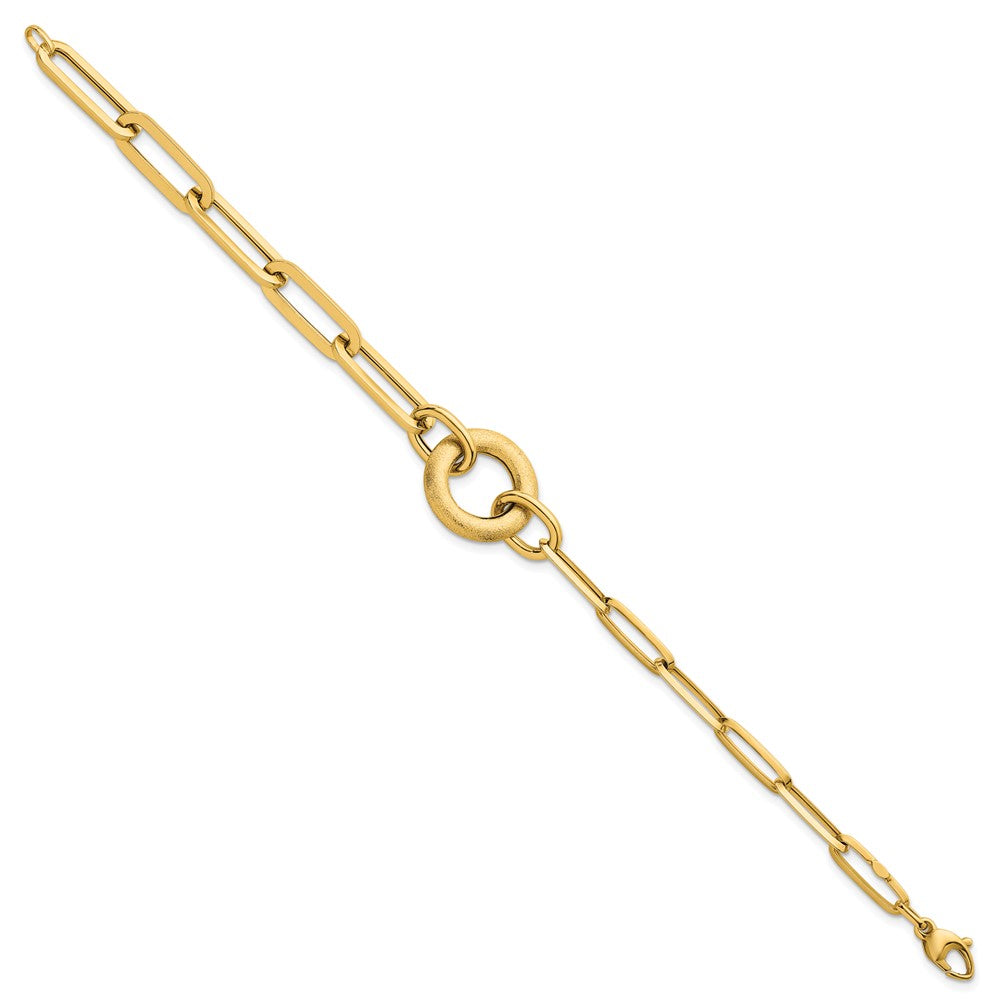 14k Polished And Brushed Paperclip Link With Circle Bracelet