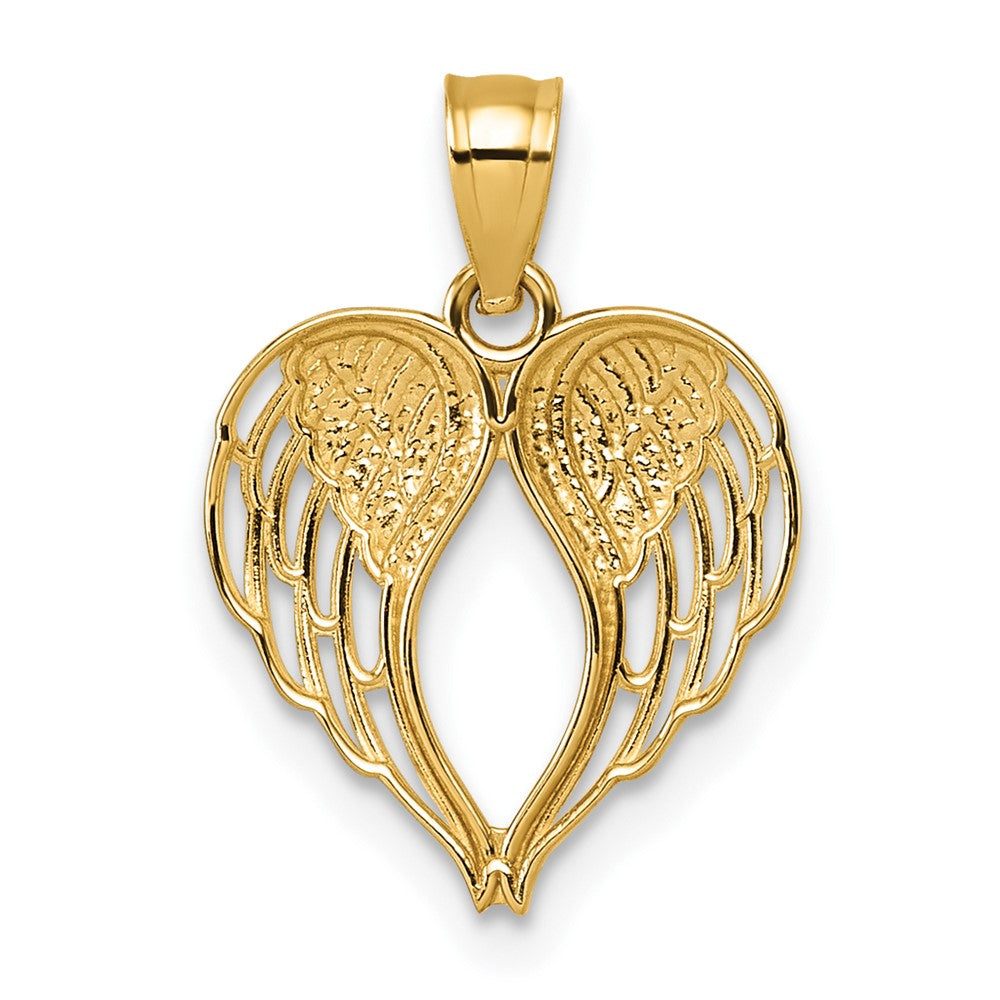 14k Polished and Diamond-cut Cut-out Wings In Heart Shape Pendant