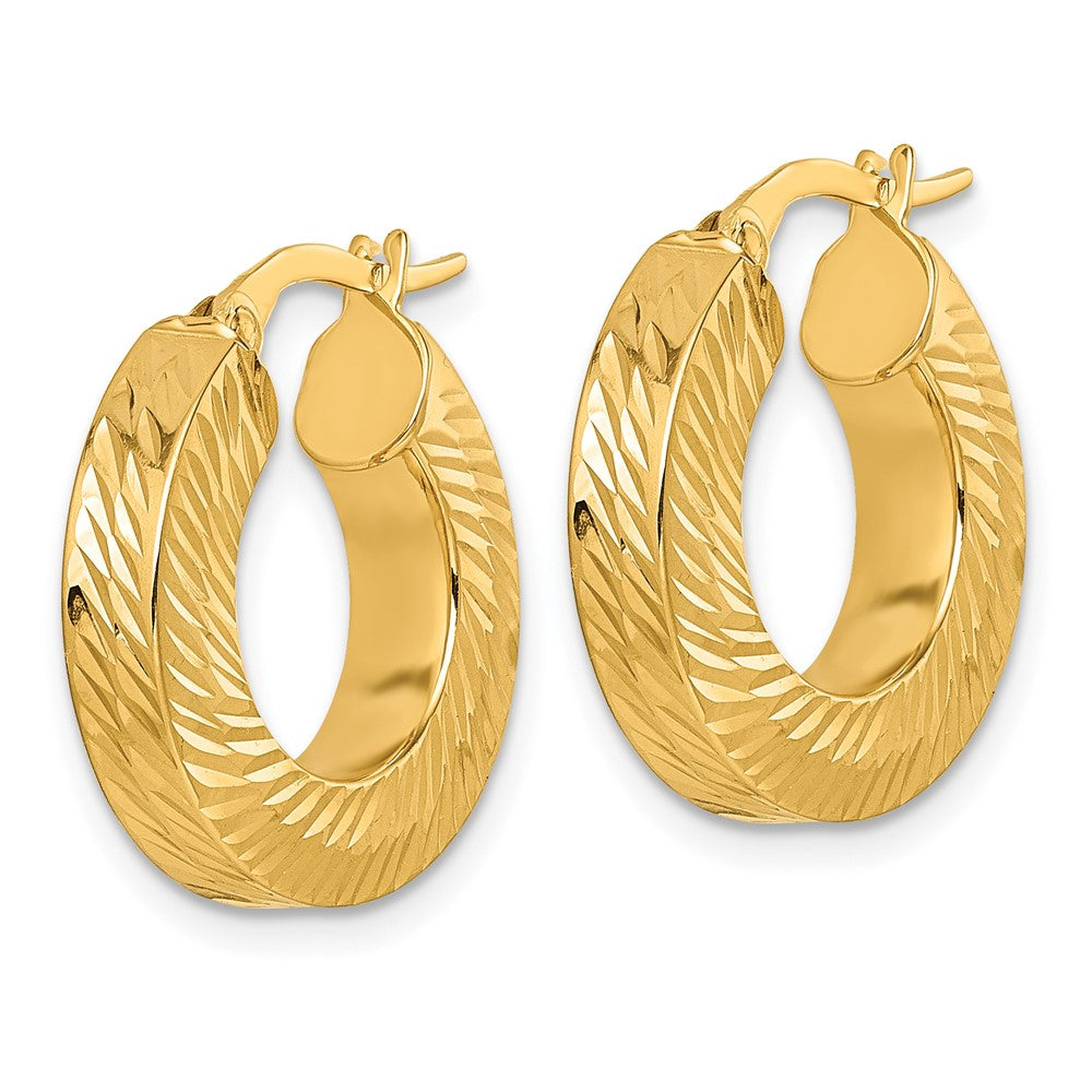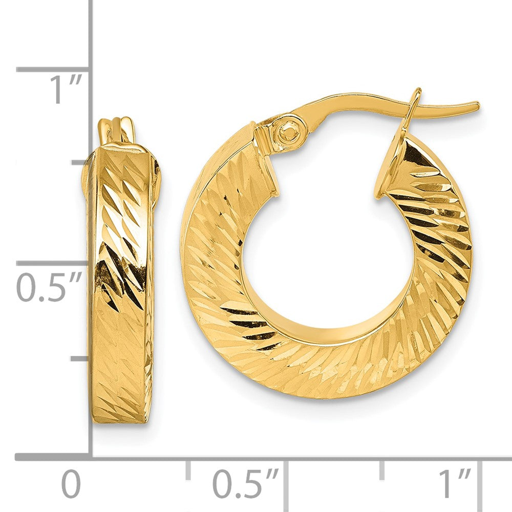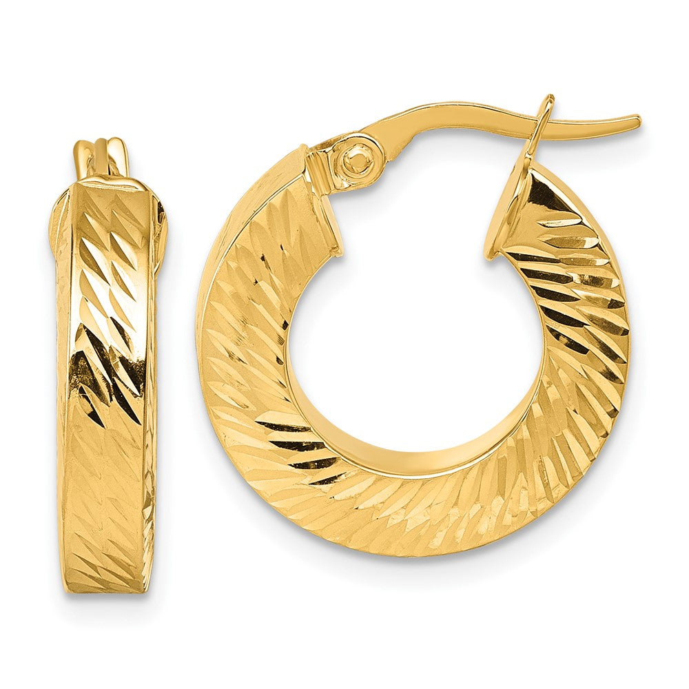 14K Polished and Diamond-cut x Square Tube Round Hoop Earrings