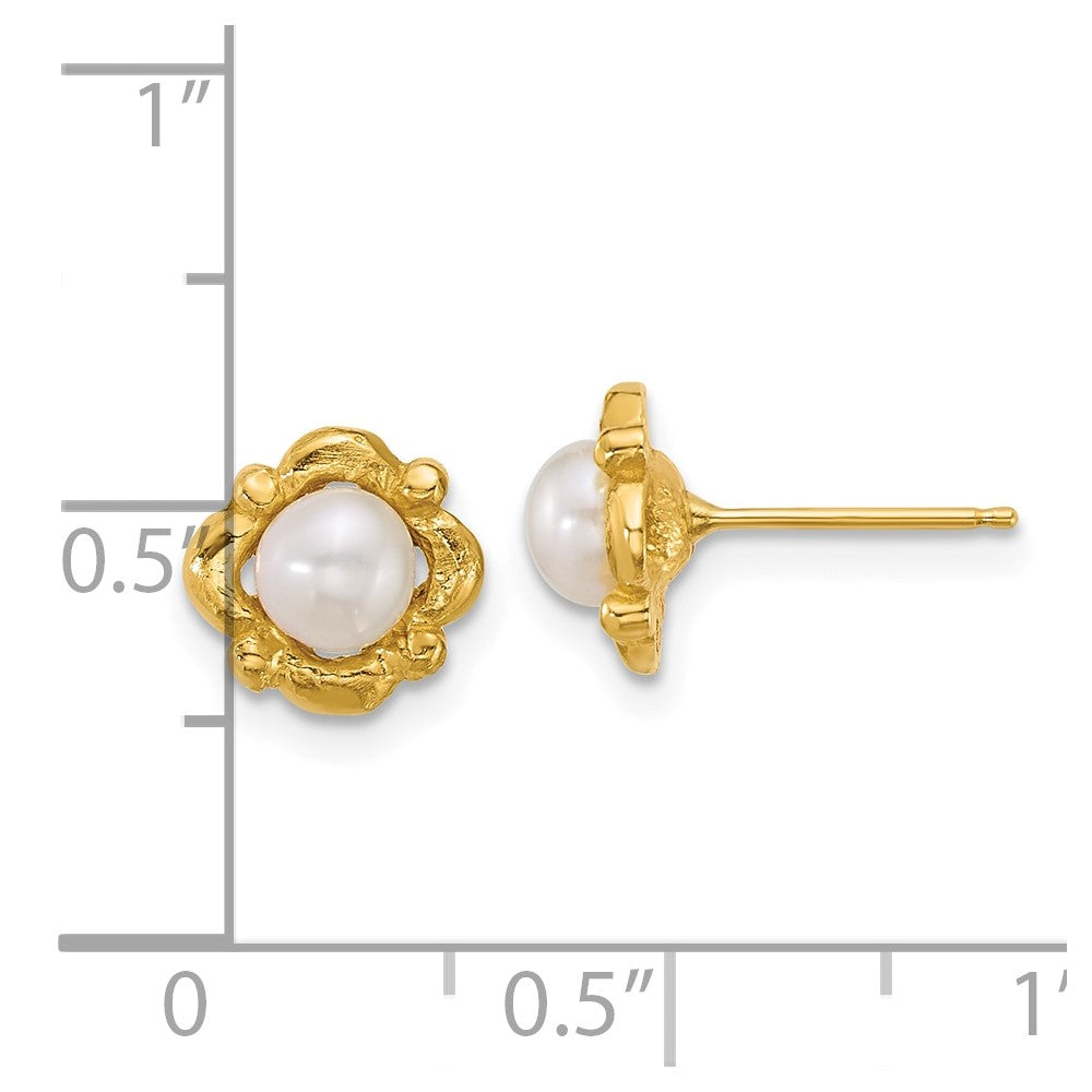 14k Polished and Textured 4- Button White Freshwater Cultured Pearl Post Earrings