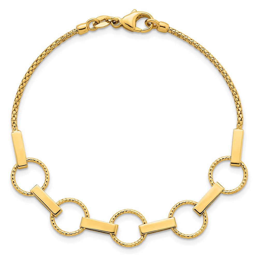 14K Polished and Textured Circles and Bars 7. Bracelet