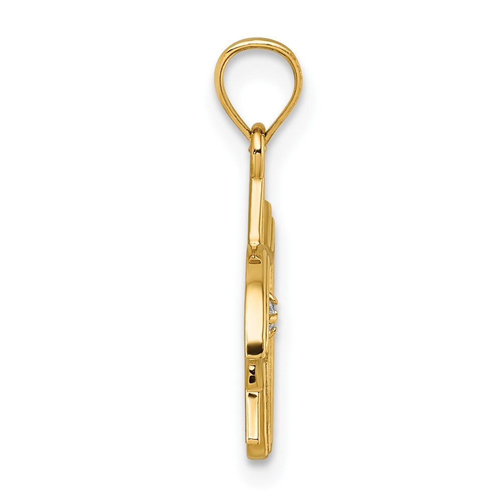 14k Polished and Textured CZ Bird and Triangle Star of David Pendant