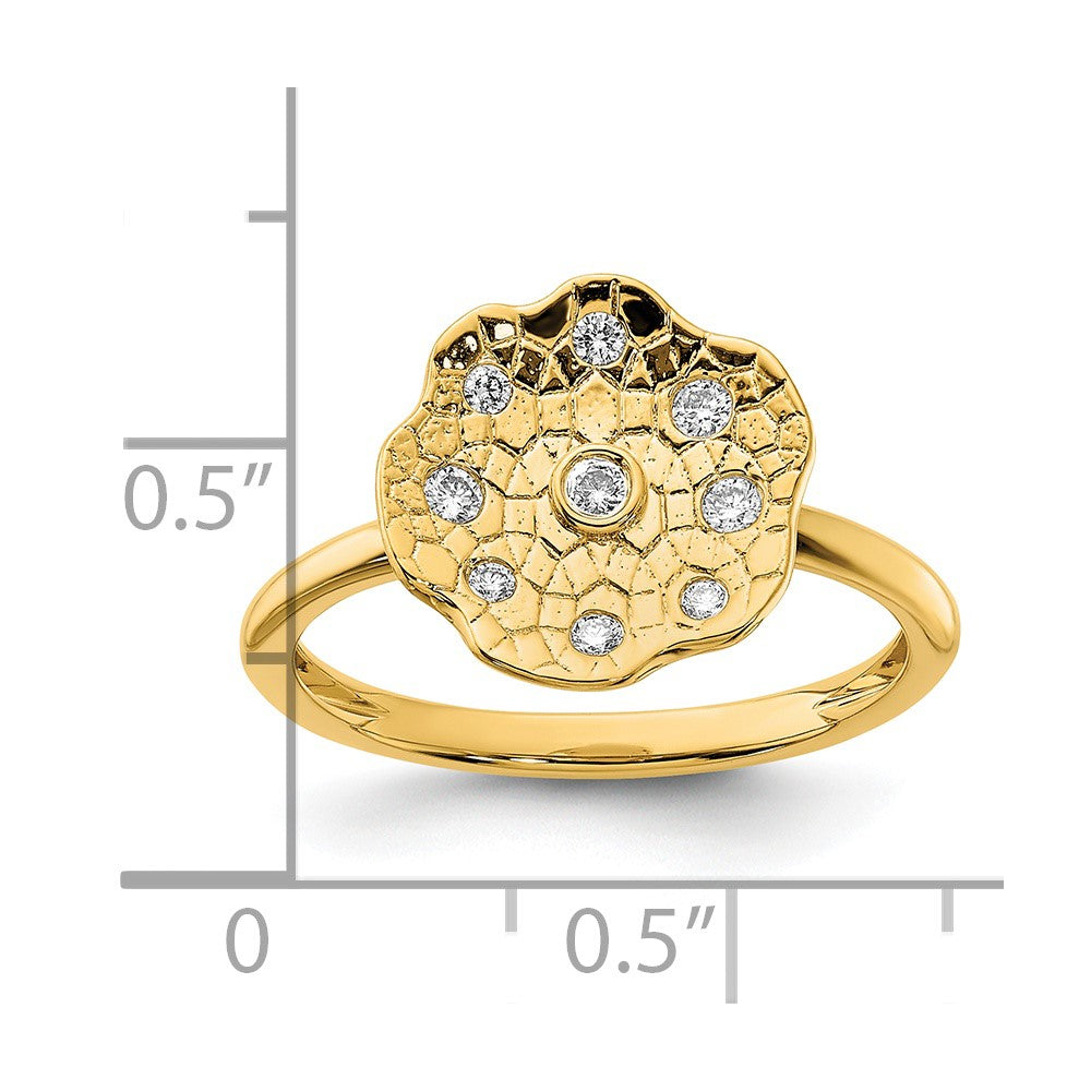 14k Polished and Textured Diamond Circle Ring