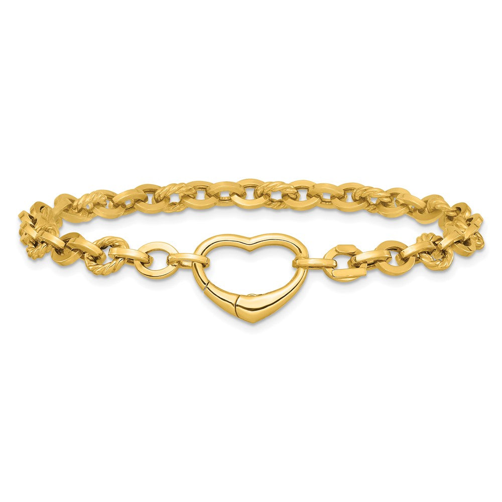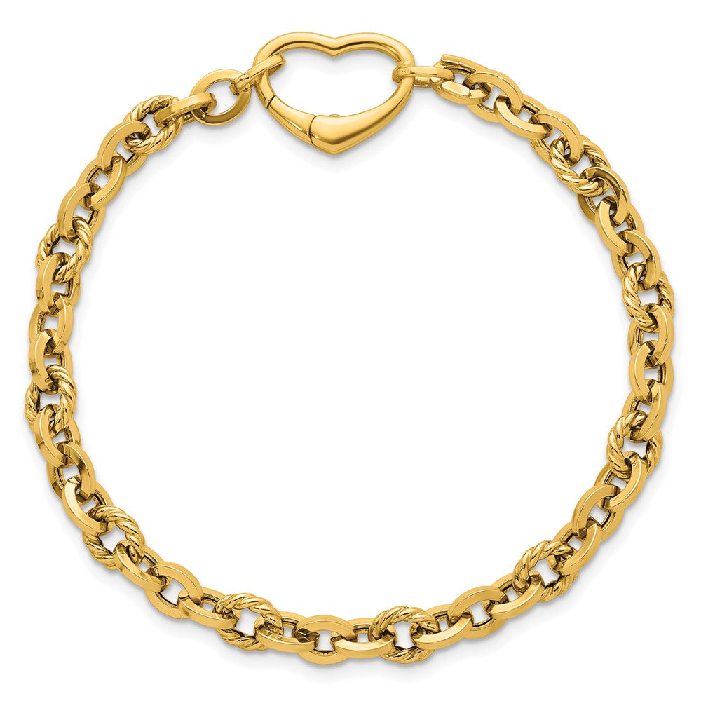 14k Polished and Twisted Cable Link with Heart Clasp 7. Bracelet