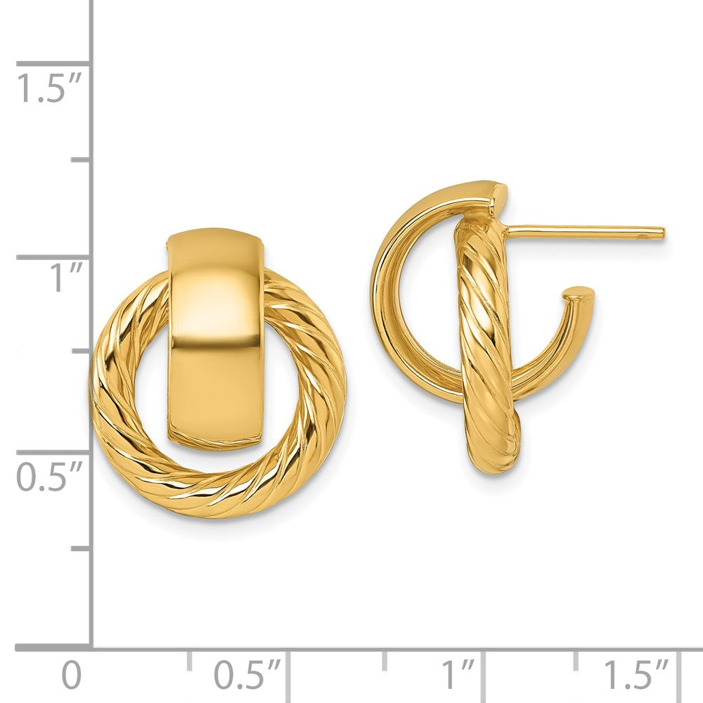 14K Polished and Twisted Doorknocker C-Hoop Post Earrings