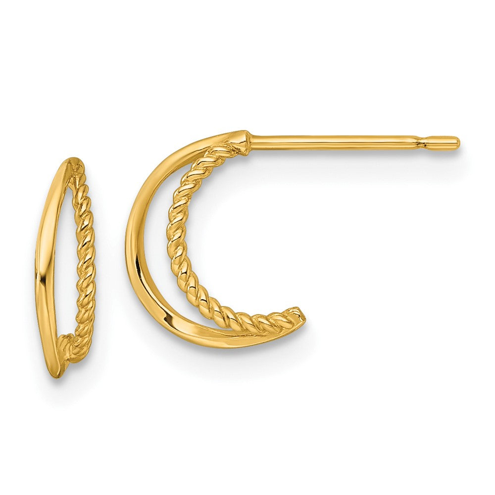 14k Polished and Twisted Double C-Hoop Post Earrings