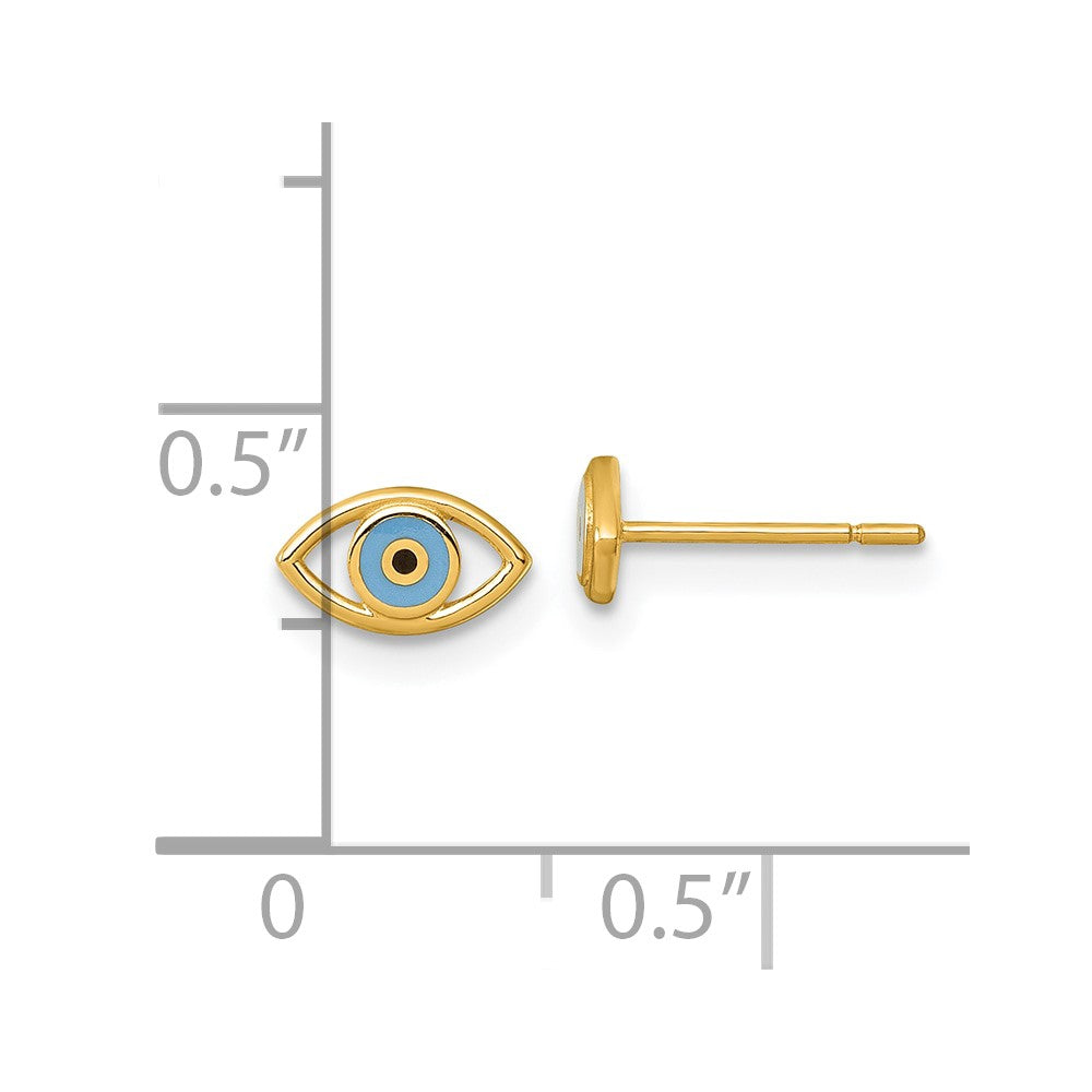 14k Polished Blue and Black Enameled Evil Eye Post Earrings