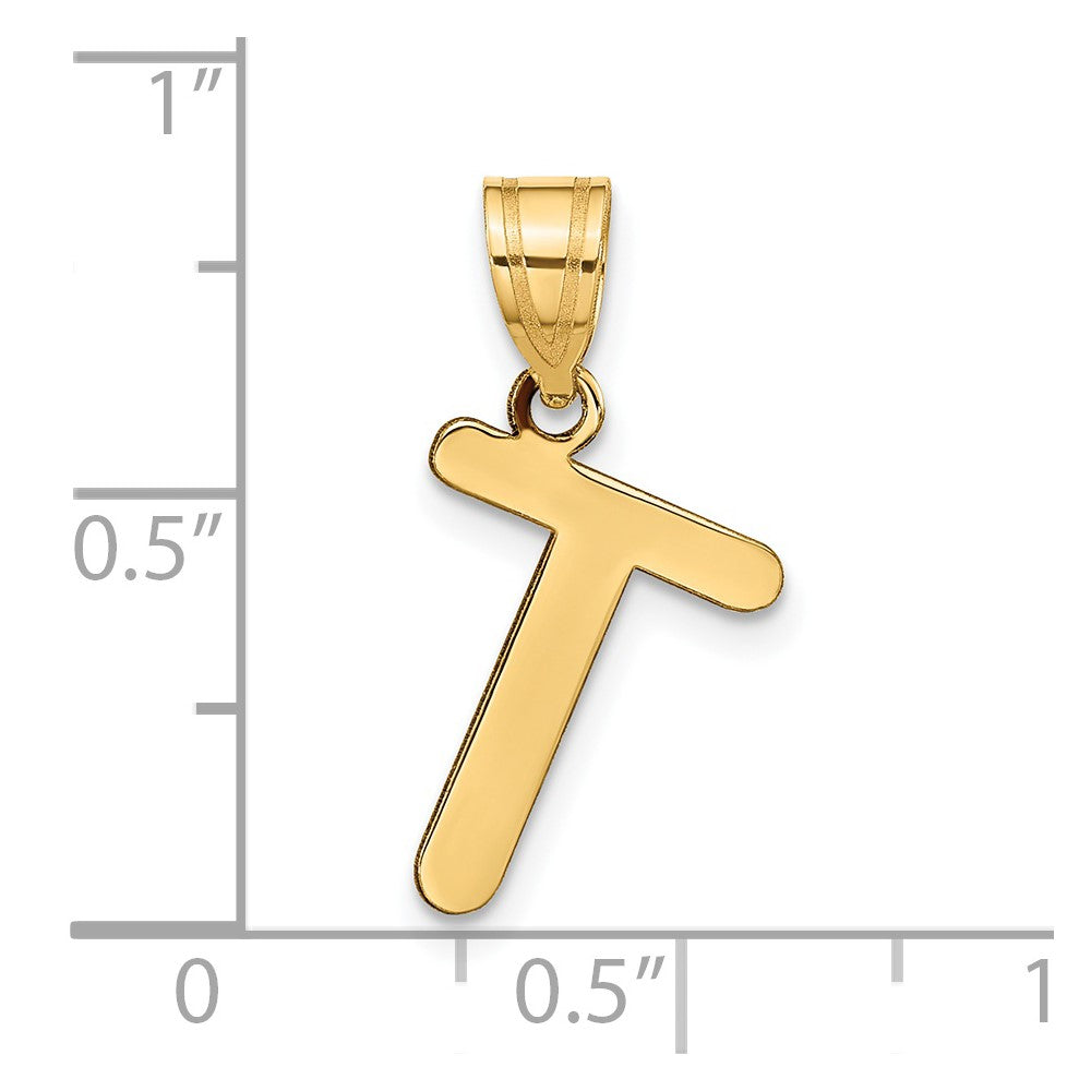14k Polished Bubble Letter T Initial Pendant