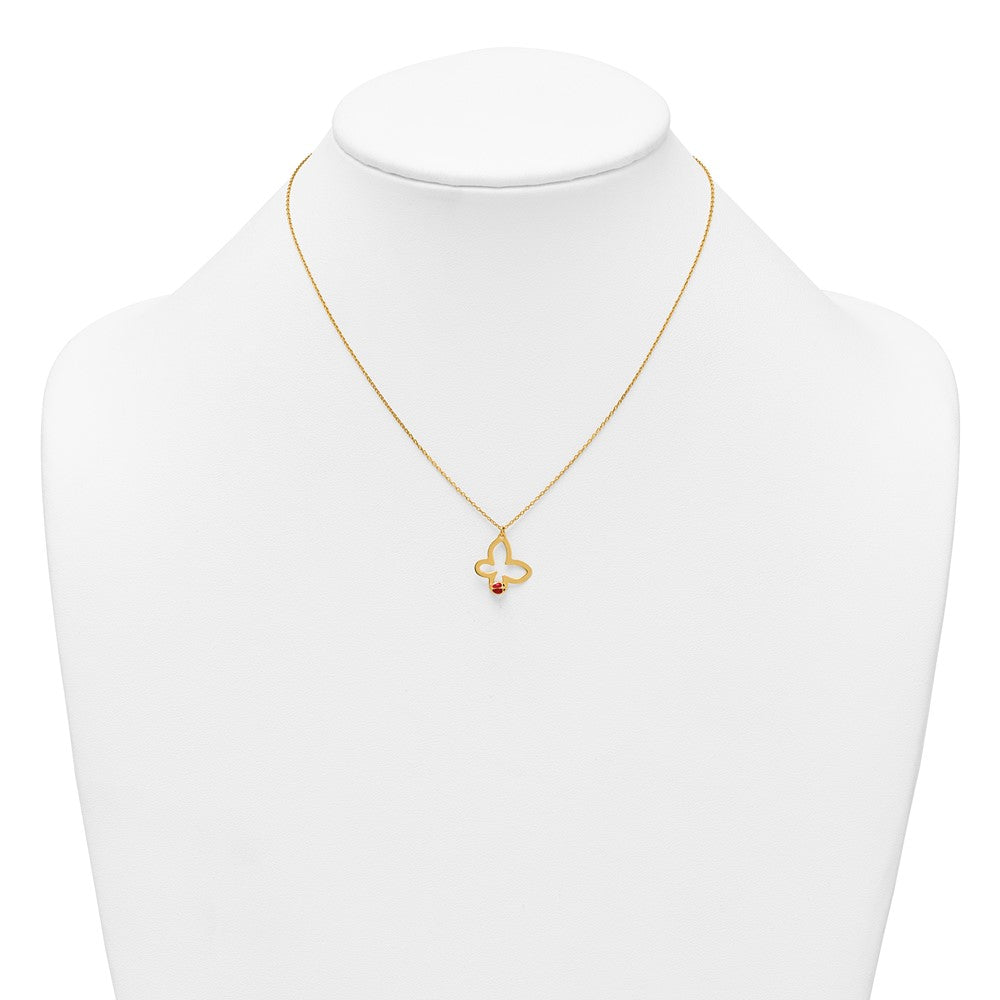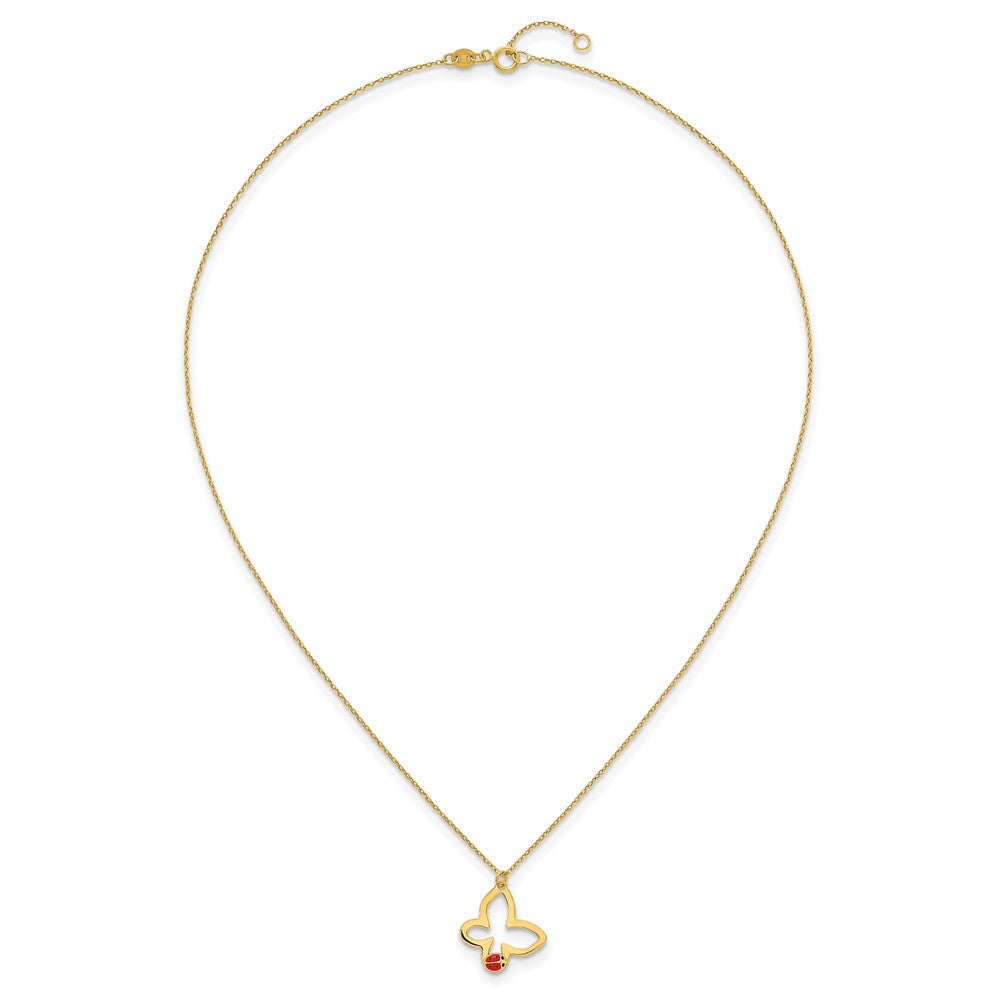 14k Polished Butterfly with Red and Black Enamel Ladybug 15. Childrens Necklace Plus 0. Extender
