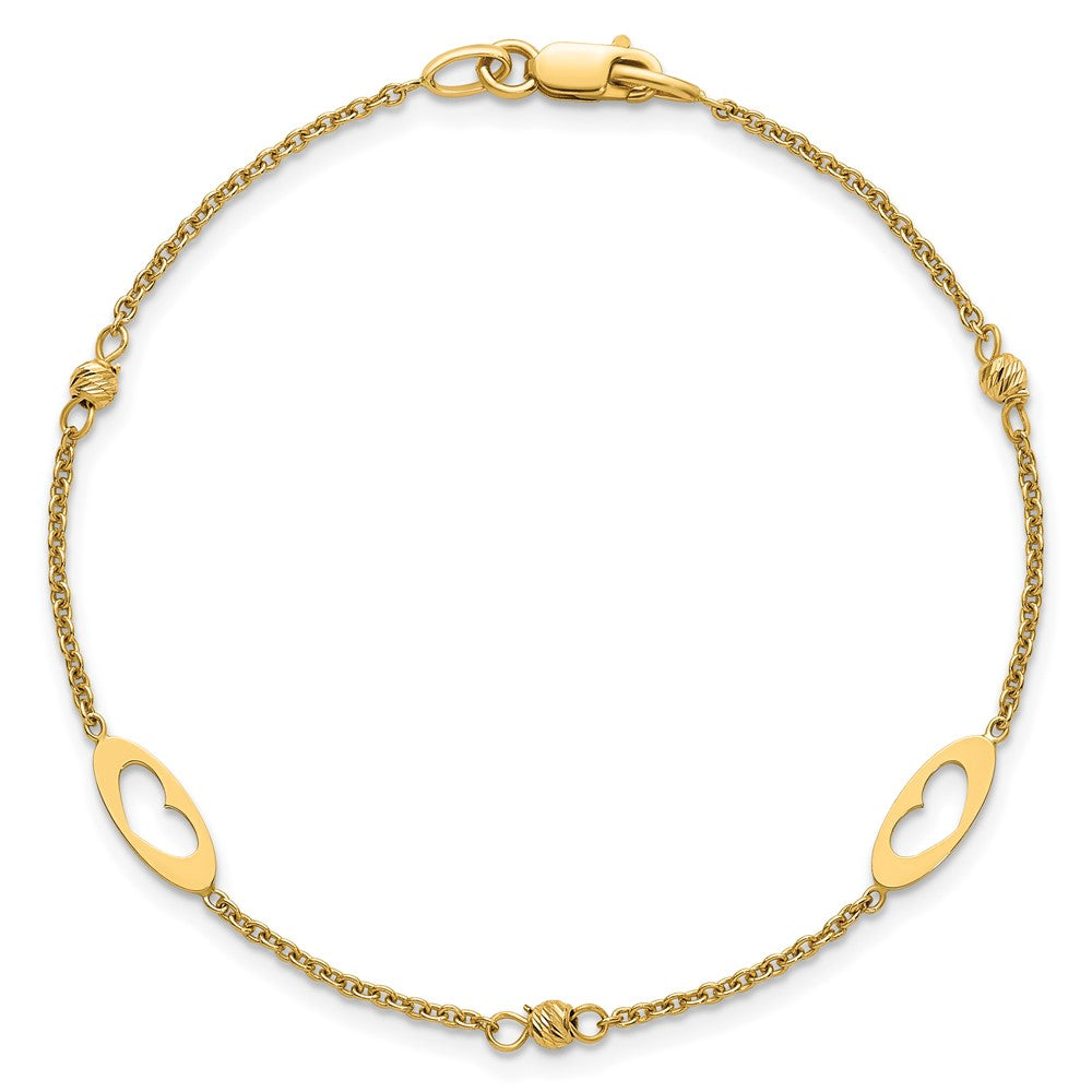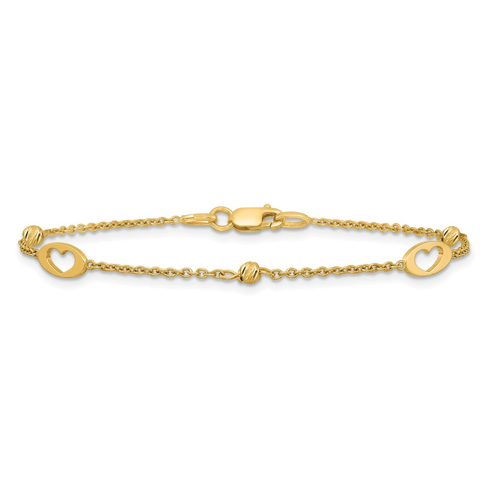 14k Polished Cut-out Hearts and Diamond-cut Beads 7. Bracelet