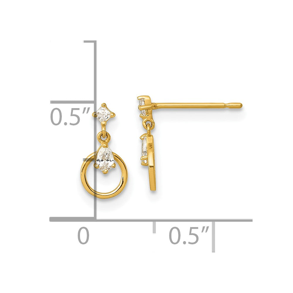 14k Polished CZ Circle Doorknocker Dangle Post Earrings