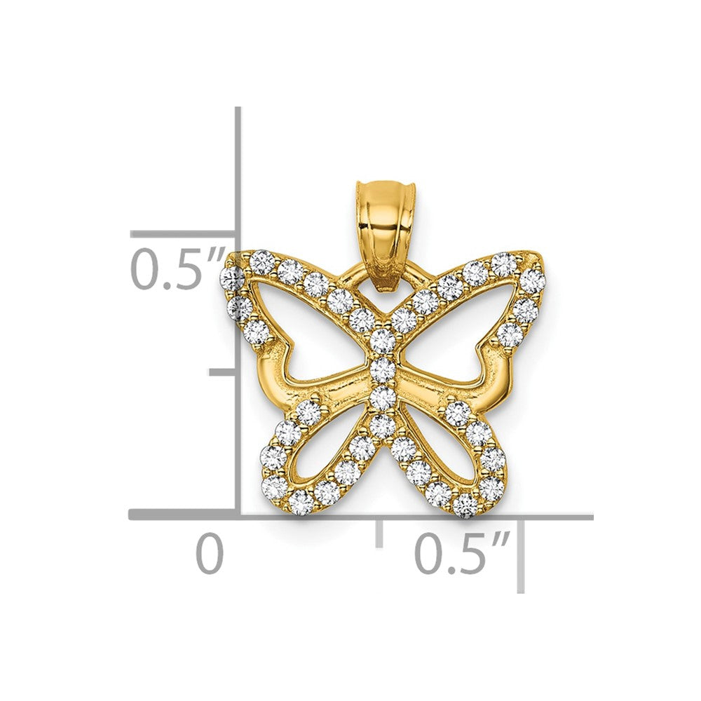 14k Polished CZ Cut Out Wing Butterfly Pendant