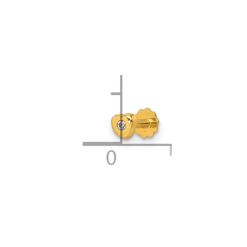 14K Polished CZ Heart 16 Gauge Labret Stud