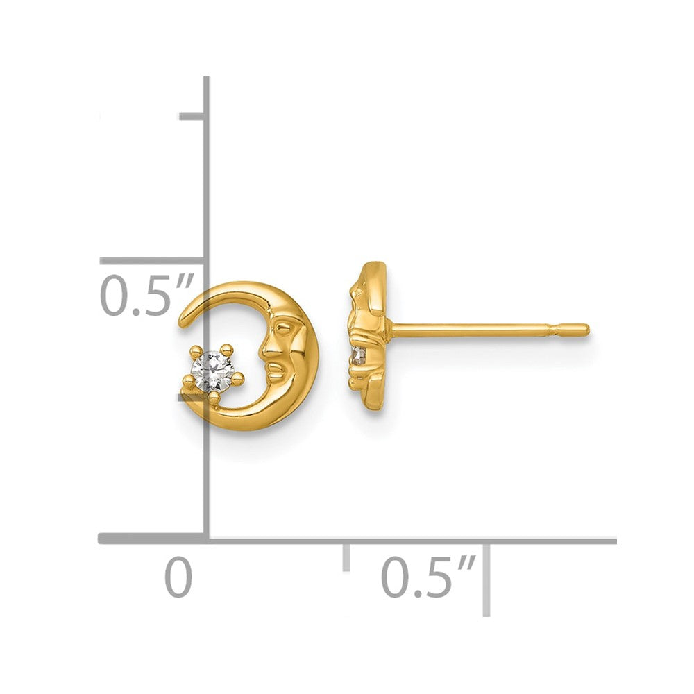 14k Polished CZ Moon and Star Post Earrings