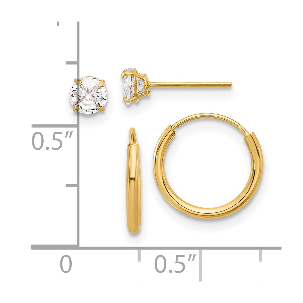 14K Polished CZ Studs and Small Endless Hoop Earring Set