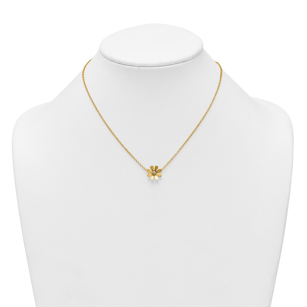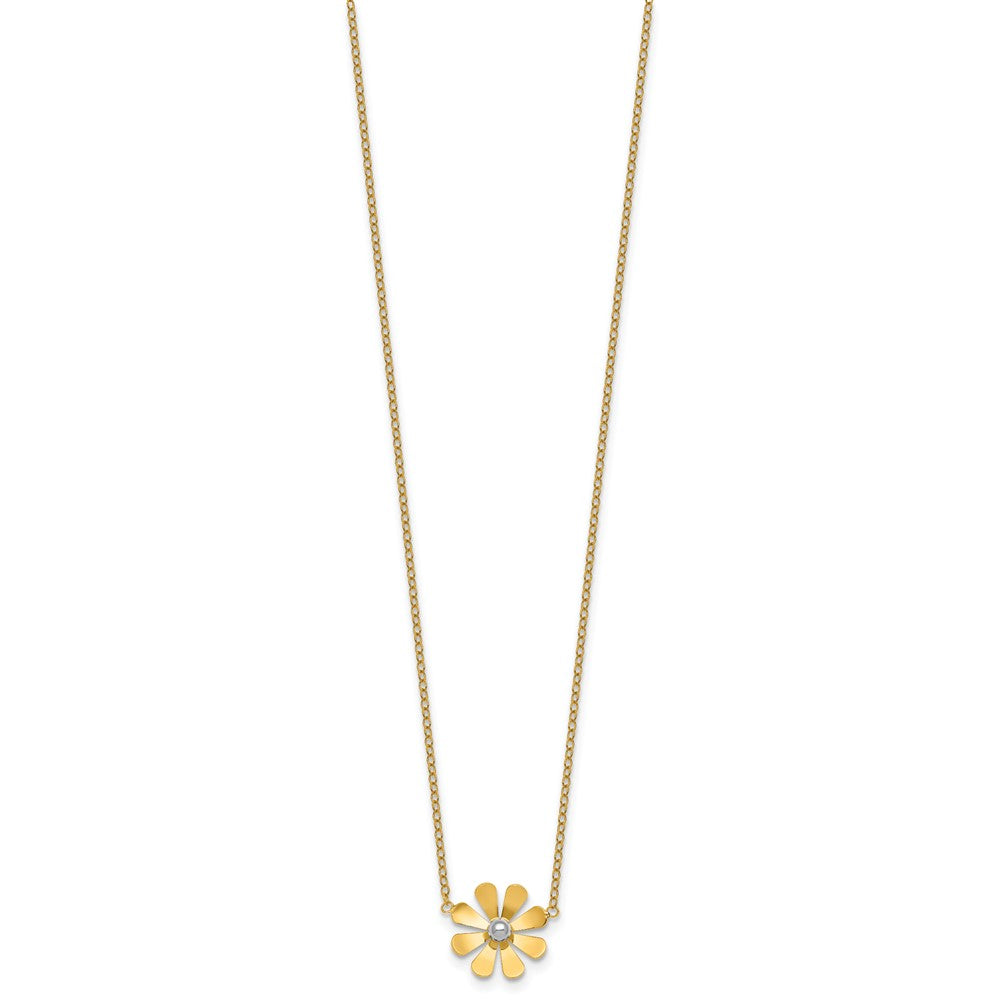 14k Polished Daisy with White Rhodium Center Necklace with Extender