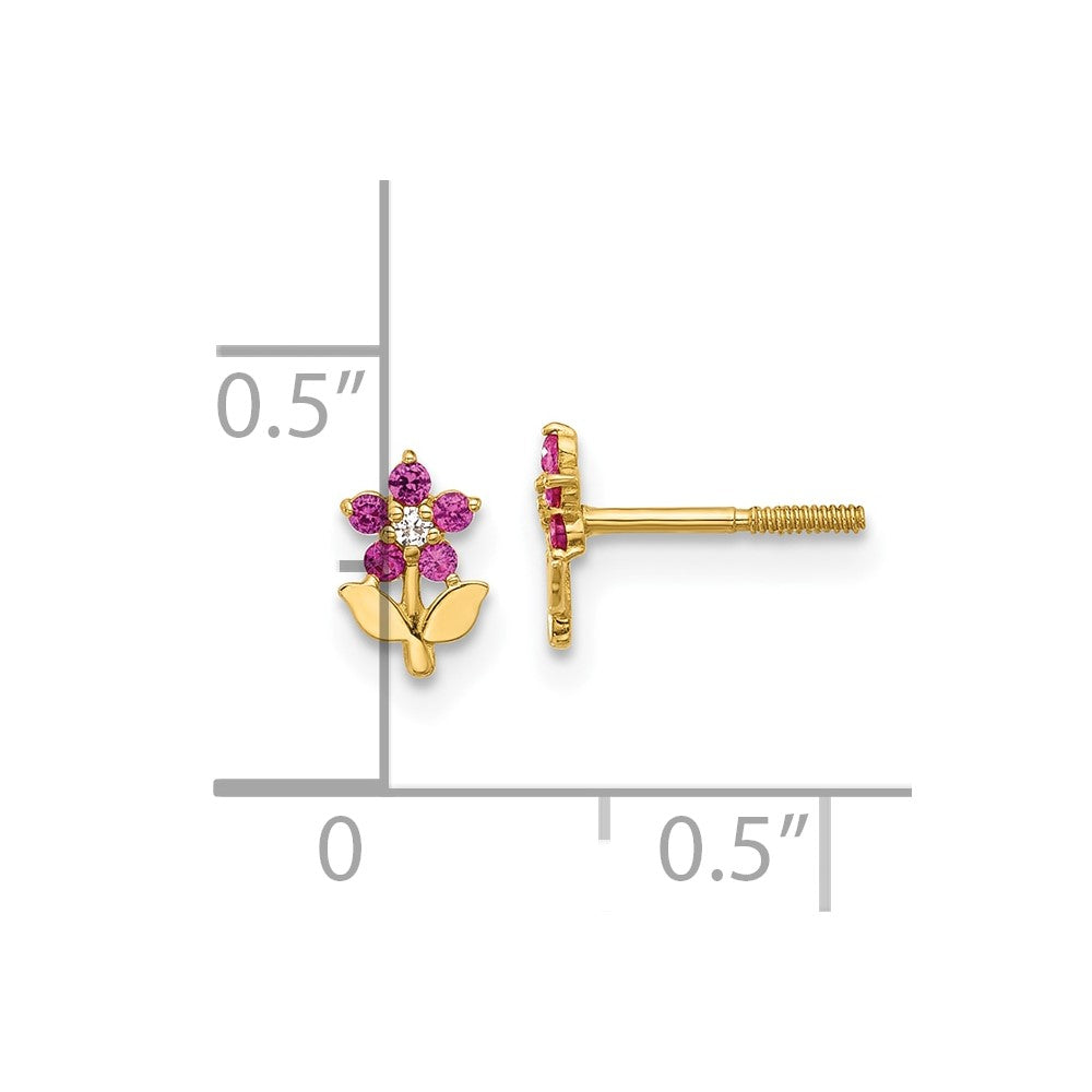 14K Polished Dark Pink & White CZ Flower Screwback Post Earrings