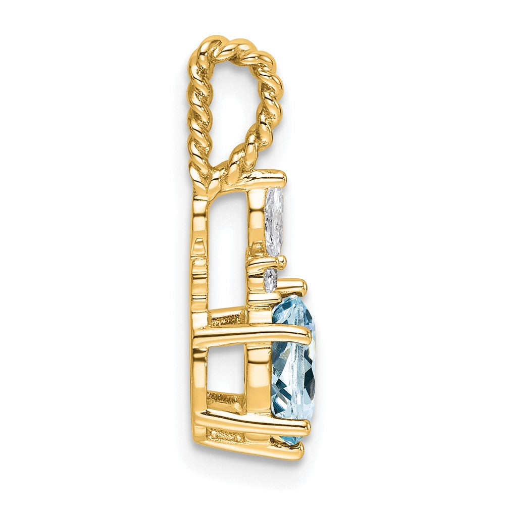 14K Polished Diamond and Aquamarine Twisted Chain Slide