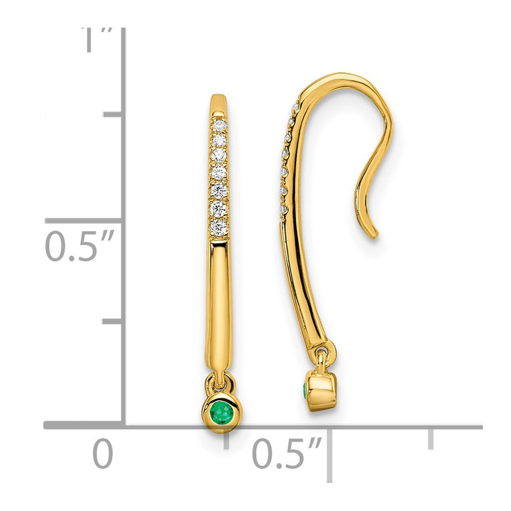 14k Polished Diamond and Emerald Drop Wire Earrings