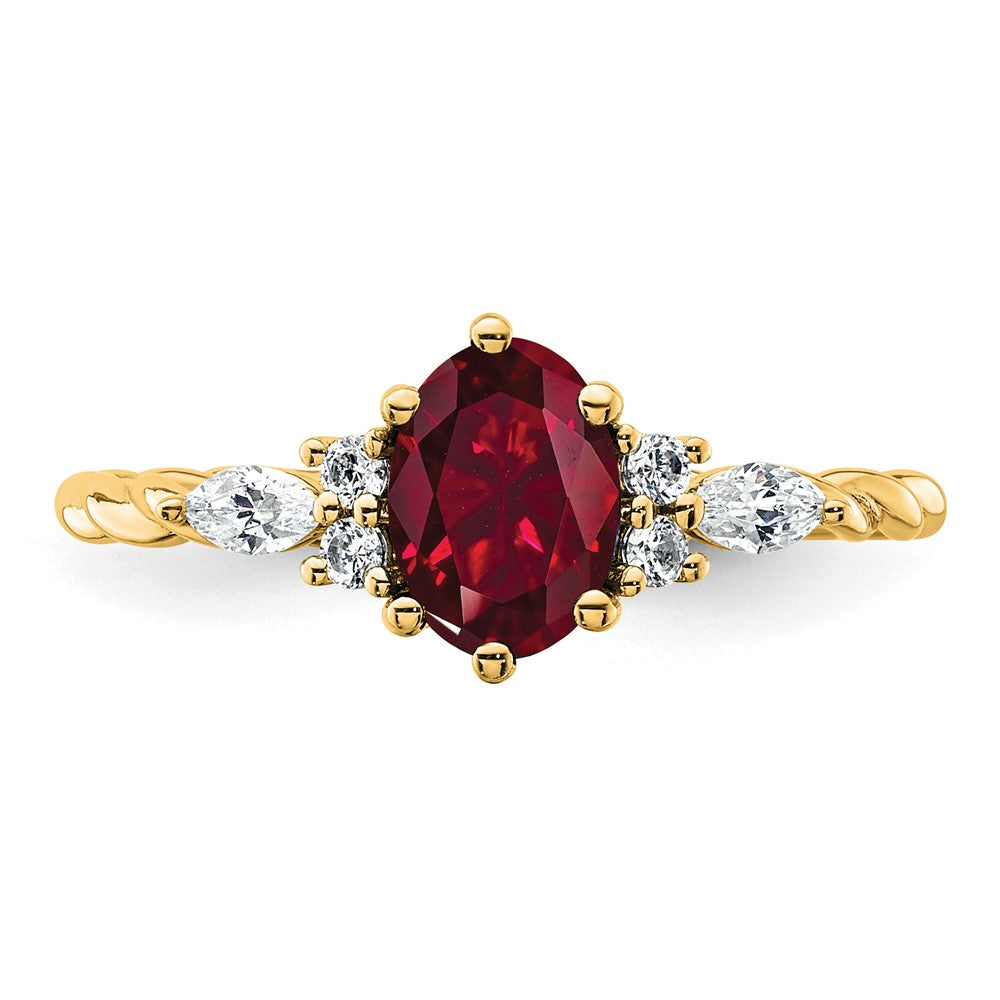 14K Polished Diamond and Lab Created Ruby Twisted Ring