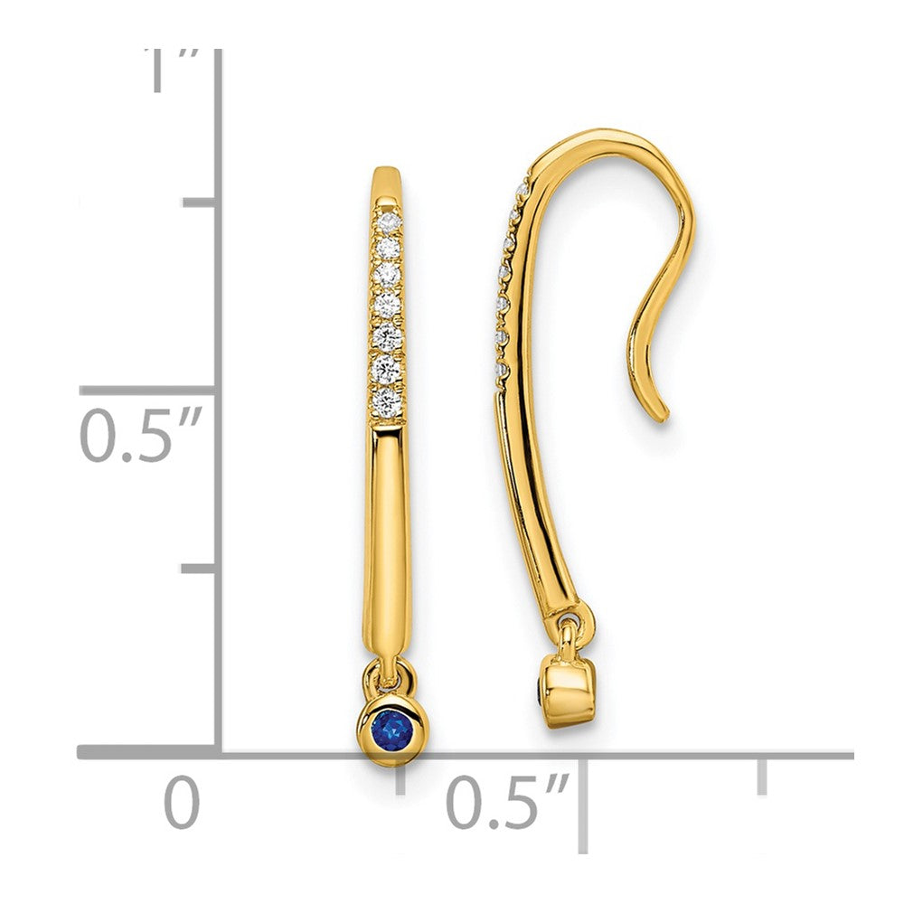 14k Polished Diamond and Sapphire Drop Wire Earrings