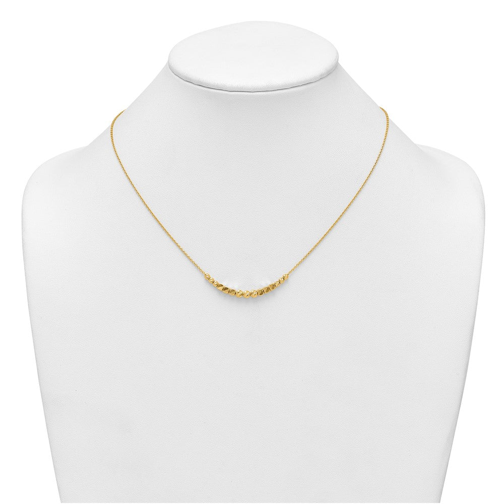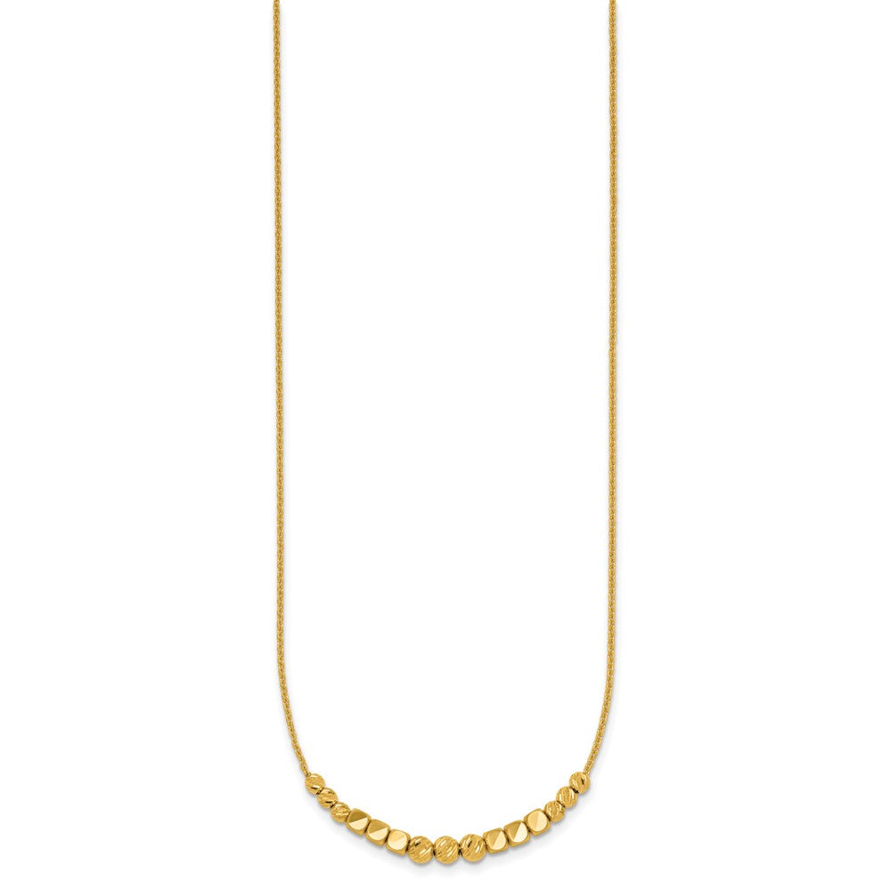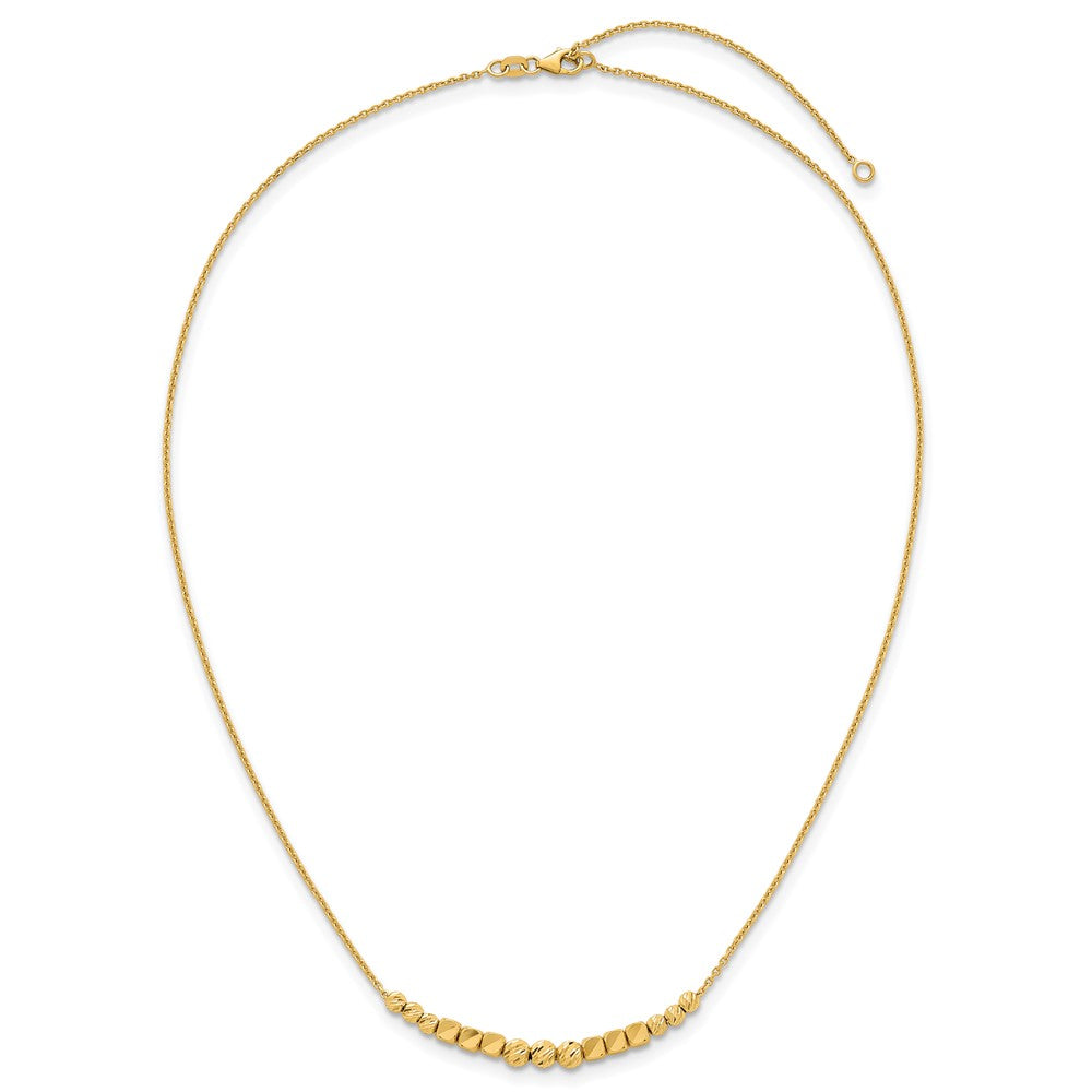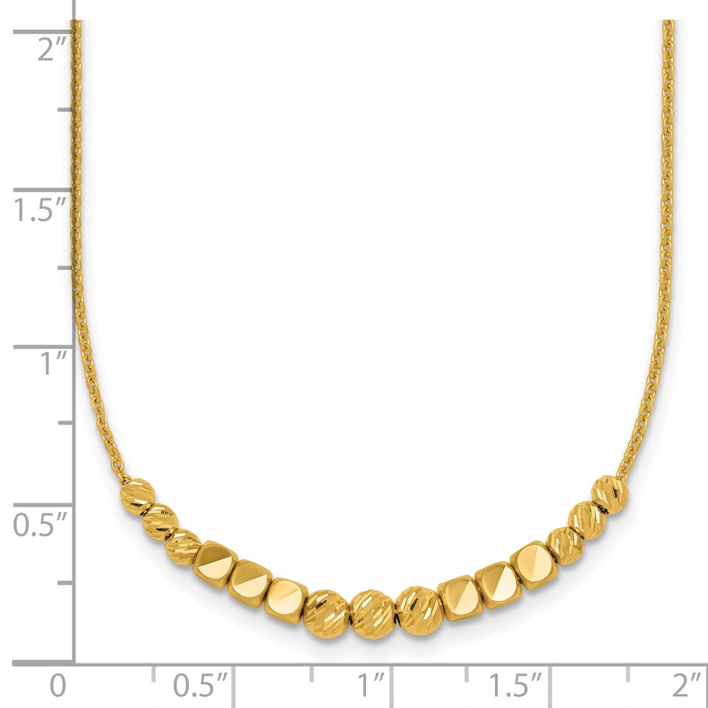 14K Polished Diamond-cut and Square Beaded Necklace Plus Extender