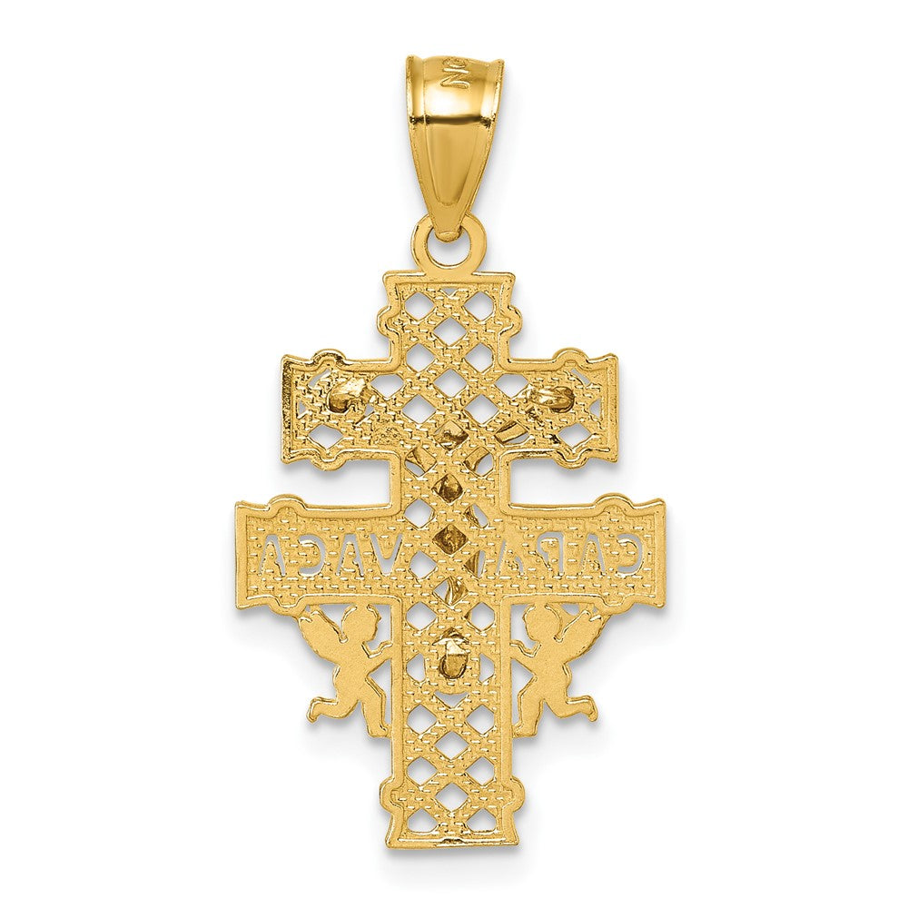 14k Polished Diamond-cut Pierced Lattice Design Cara Vaca Cross Pendant