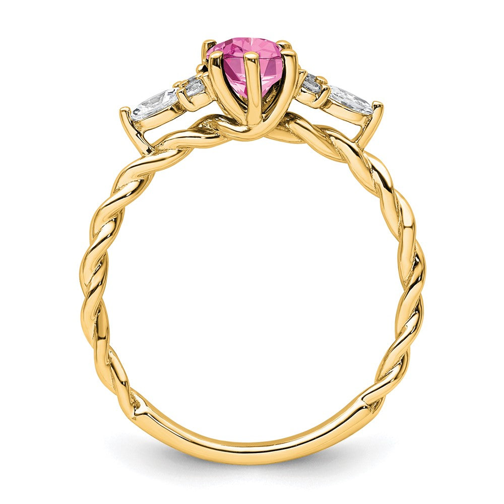 14K Polished Diamond & Lab Created Pink Sapphire Twisted Ring