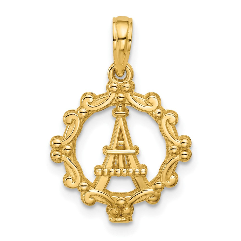 14K Polished Eiffel Tower w/Separate Heart Pendant