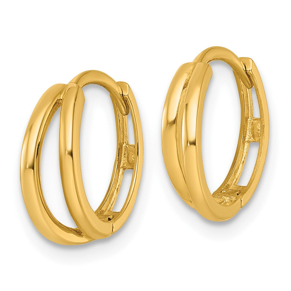 14k Polished Fancy Double Round Hinged Hoop Earrings